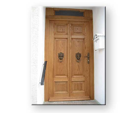 Massiv Eichenholz Eingangs Türe mit Messingguss Löwenköpfen