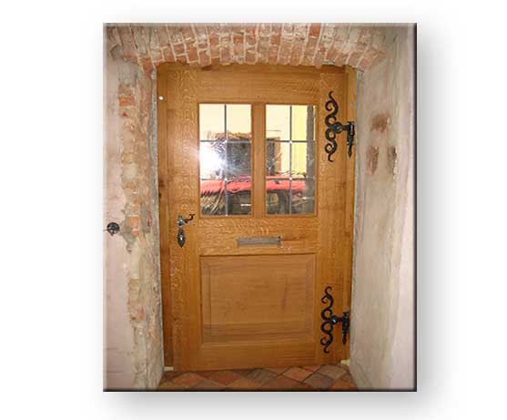 Traditionelle Eichentür Neuanfertigung mit Antik-Glas und geschmiedete Beschläge Innenansicht