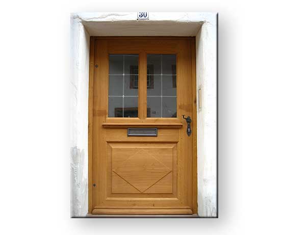 Traditionelle Eichentür Neuanfertigung mit Antik-Glas und geschmiedete Beschläge Aussenansicht